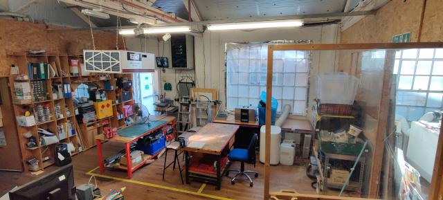 For a little while now, our 3d printing room (The one in the middle) has been a total mess. Every usable surface was covered in odd bits and bobs, rubbish, and cool hackable components that were impossible to get to: